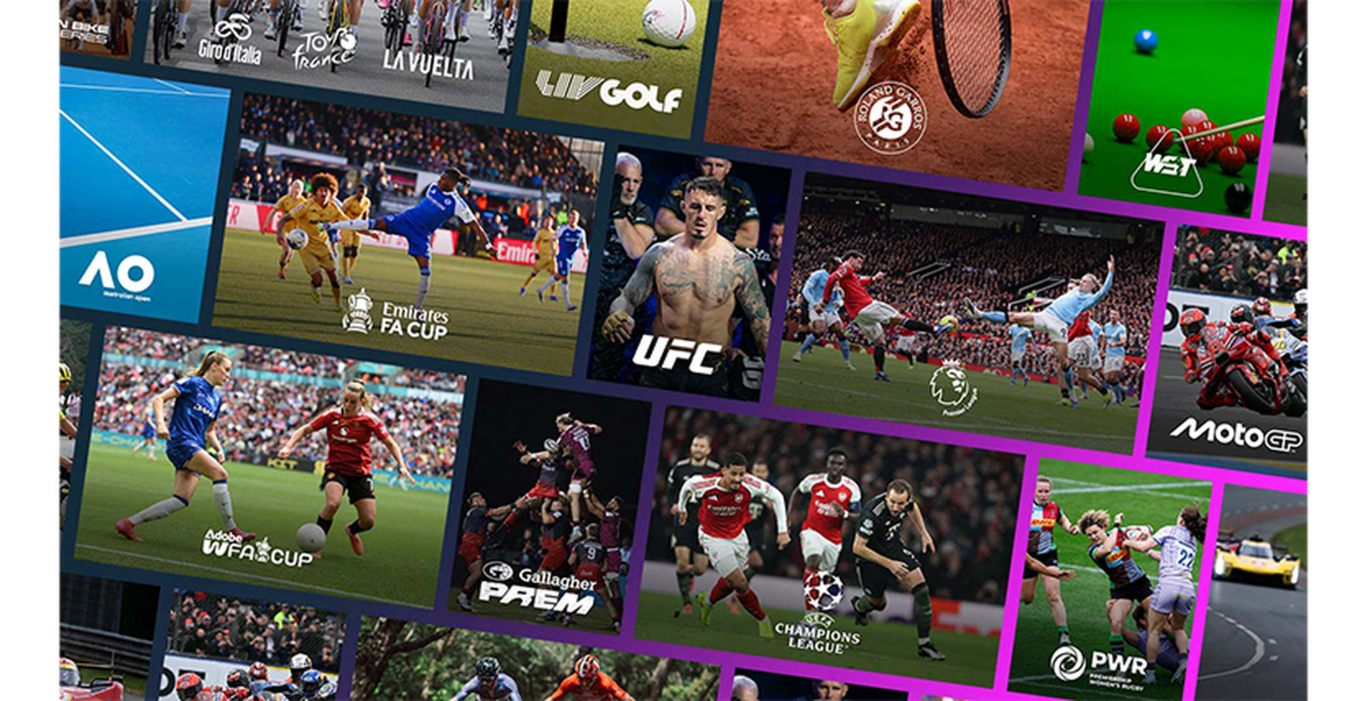 Get involved with this year's Gallagher PREM and Premiership Women's Rugby, MotoGP, LIV Golf, UFC, Cricket, Grand Tour Cycling, Snooker, Australian Open & Roland-Garros Tennis, Glasgow 2026 Commonwealth Games and Olympic Games from 2028 to 2032.