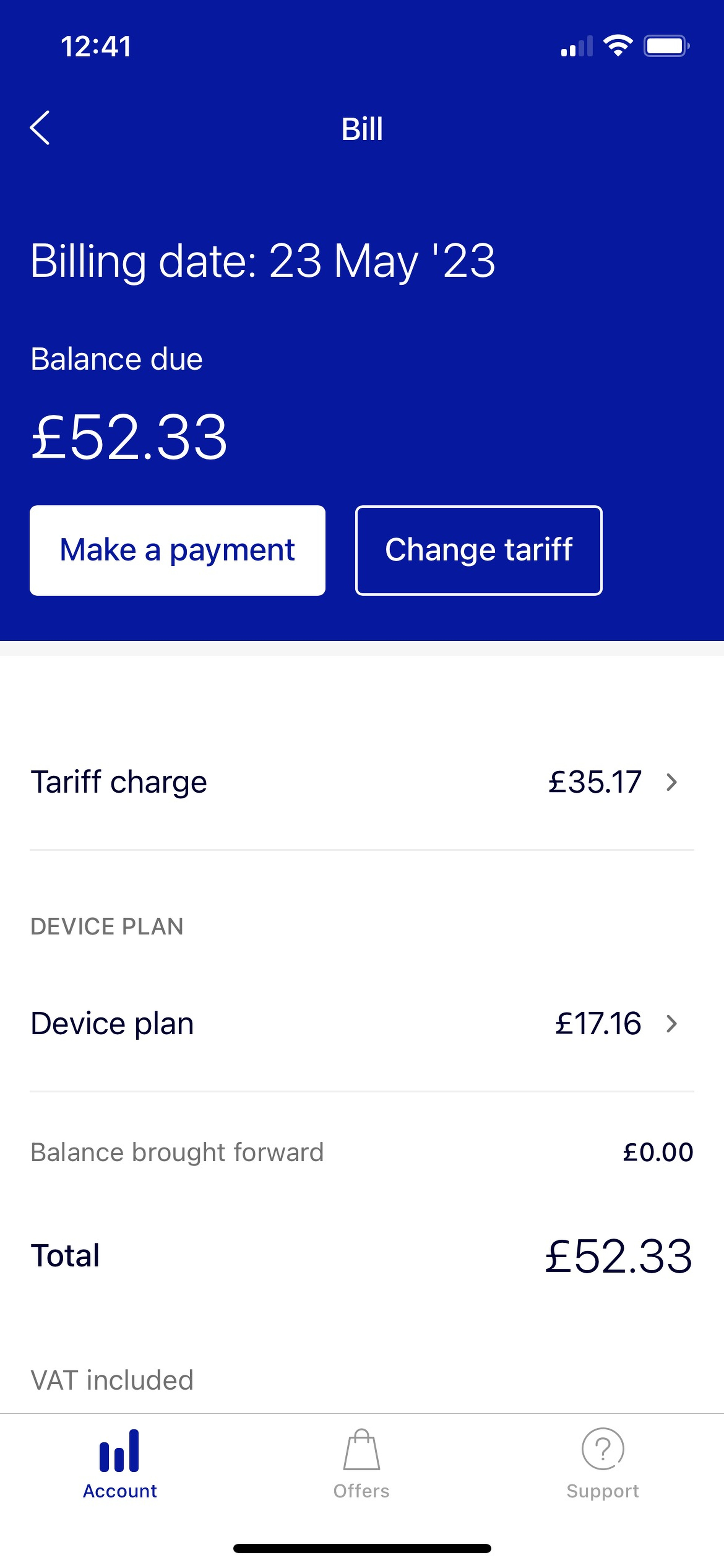 We’re making a small change to our banking and the way we collect Direct Debit payments. As a result, we’ve cancelled your old Direct Debit and set up a new one to replace it. If you previously had two Direct Debits (one for your airtime and one for your device plan), you’ll now have just one that combines both. This change doesn’t alter the total amount you pay us, and your billing and payment dates stay the same.