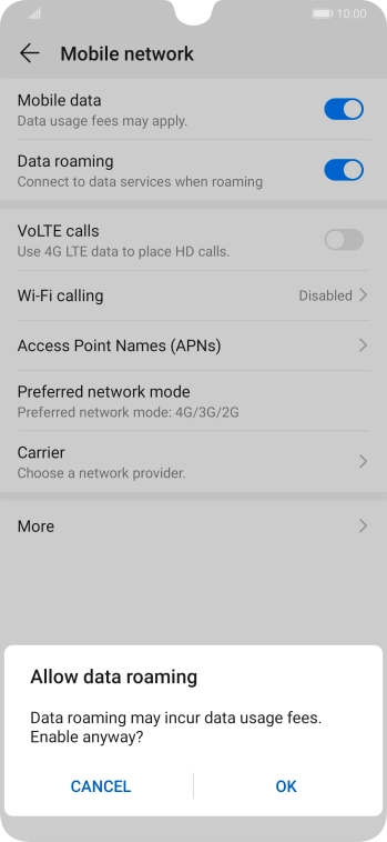 - Press the indicator next to 'Data roaming' to turn the function on or off.