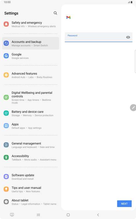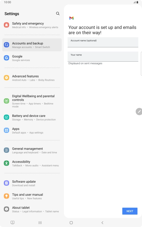 - If this screen is displayed, you email account has been recognised and set up automatically. Follow the instructions on the screen to key in more information and finish setting up your tablet.