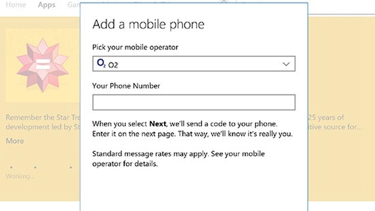 Pick O2 from the list of mobile operators. Then enter your phone number.
