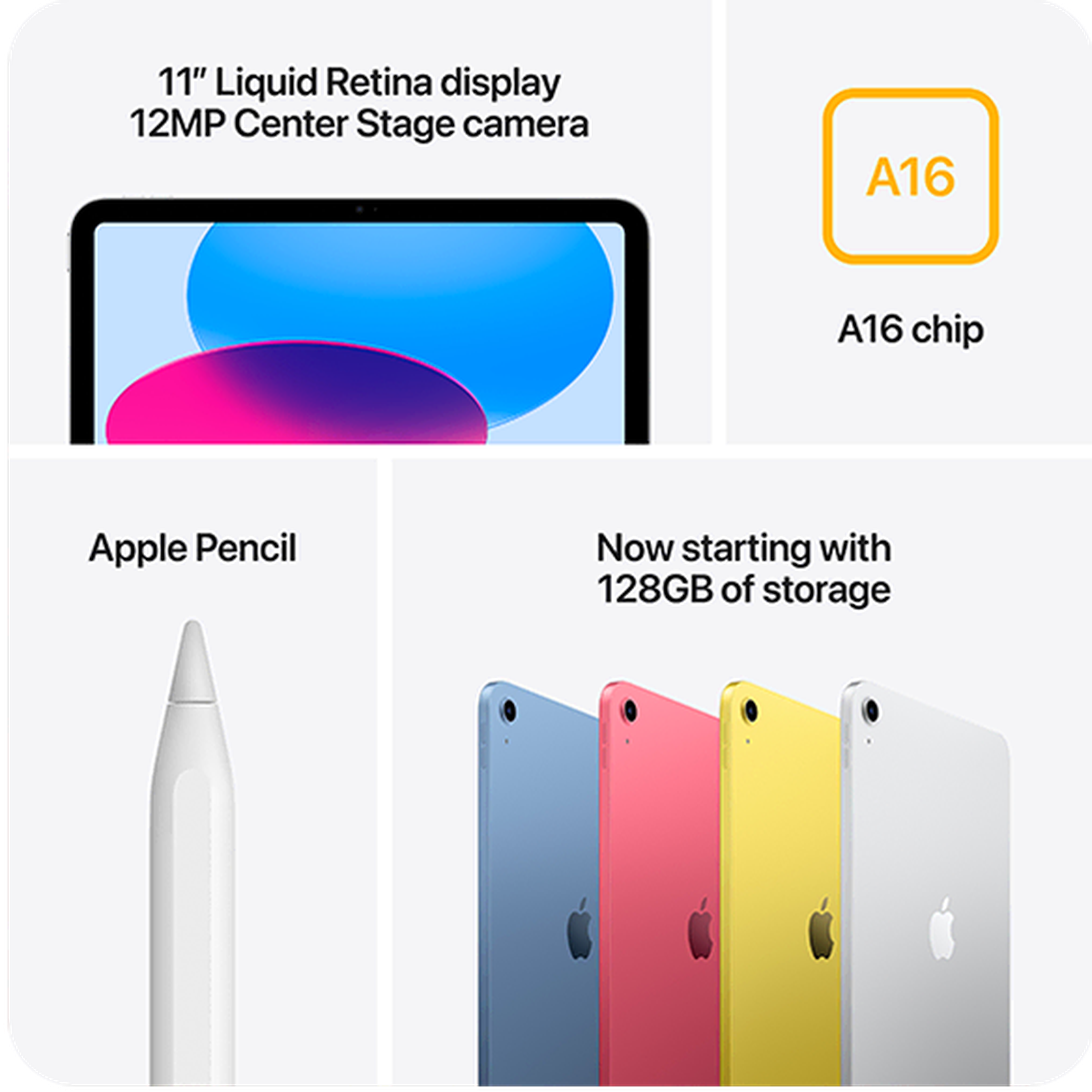 Upgrade your look with the stylish iPad 11 inch A16 colour options, ideal to suit everyone's style. You can choose from: Blue, Pink, Yellow and Silver.
