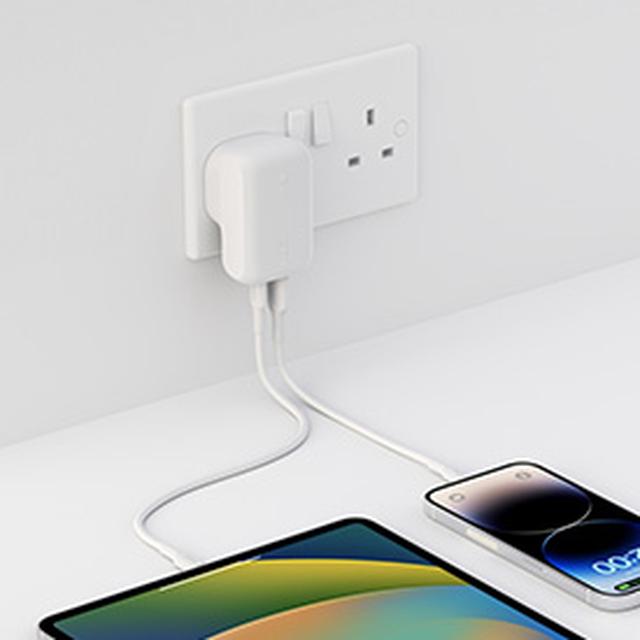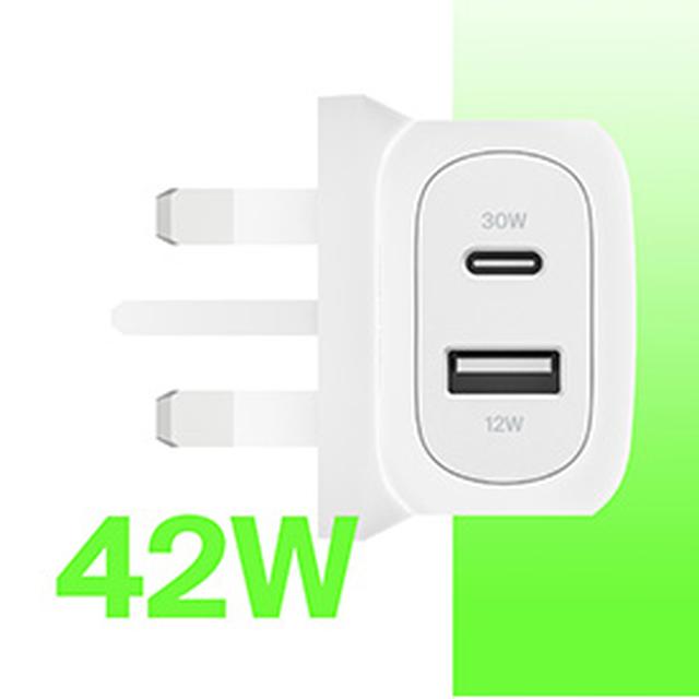 Keep your household happy and charge another device while you charge yours. Grab a fast charge for iPhone or Samsung with the 42W Dual Wall Charger. Dual ports include a 30W USB-C port and a 12W USB-A port.