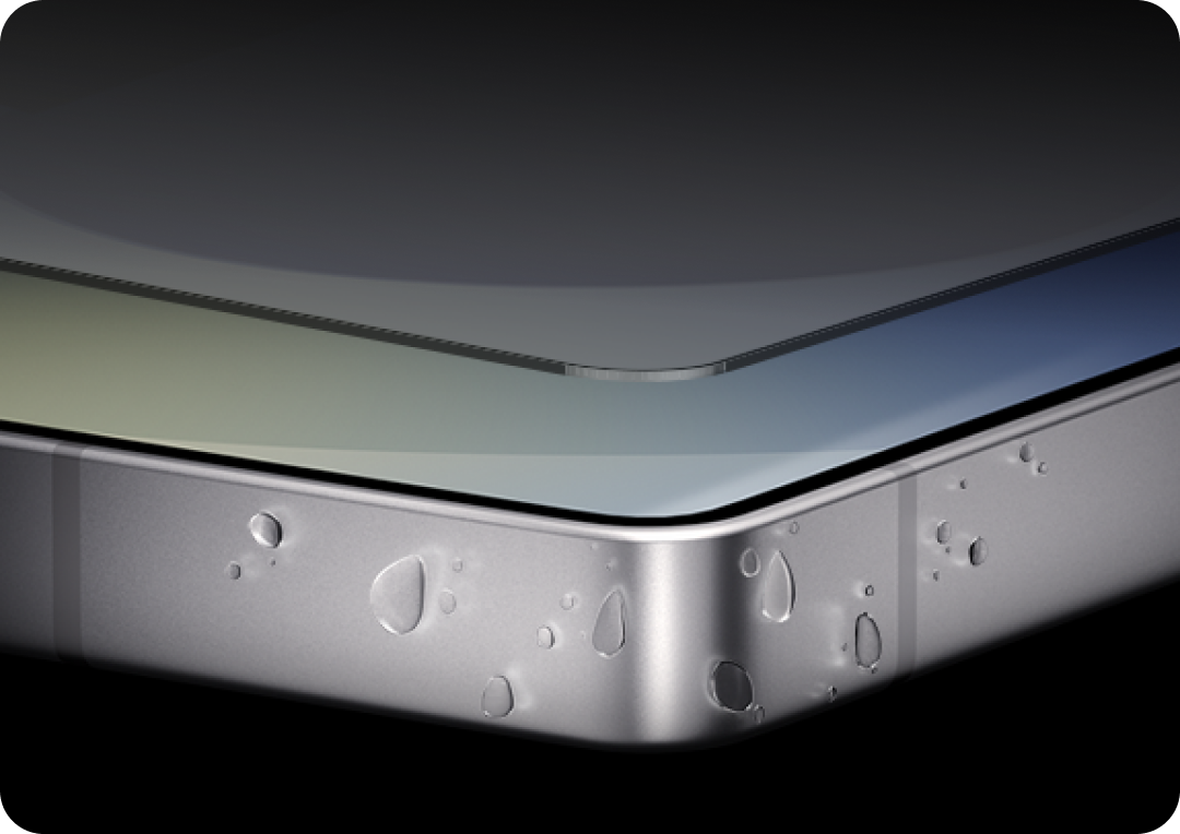 Corning® Gorilla® Armor 25 with anti-reflective properties lets you stream in the sun, while a slim titanium frame with comfy rounded corners and IP68 protection shields against drops, dust, and spills.6